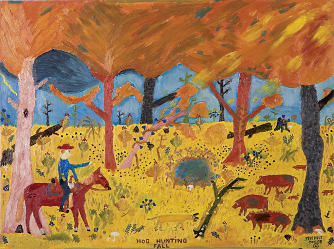 Ken Pelt grew up in the "Big Thicket" area of East Texas on a small subsistence farm near Sour Lake in Hardin County. Here in the rural community of Pine Ridge, during the 1940's and 1950's, he lived a life much like areas of Appalachia and parts of the rural South. Never having taken painting lessons or painting anything except a house or barn, and being color blind, Ken is not your normal artist. However, wanting to write stories about his life and his faith with his own illustrations, at 48 years of age he became a folk artist. The resulting combination of folk art paintings and short narratives along with historical and supporting pictures makes for a unique series of books.